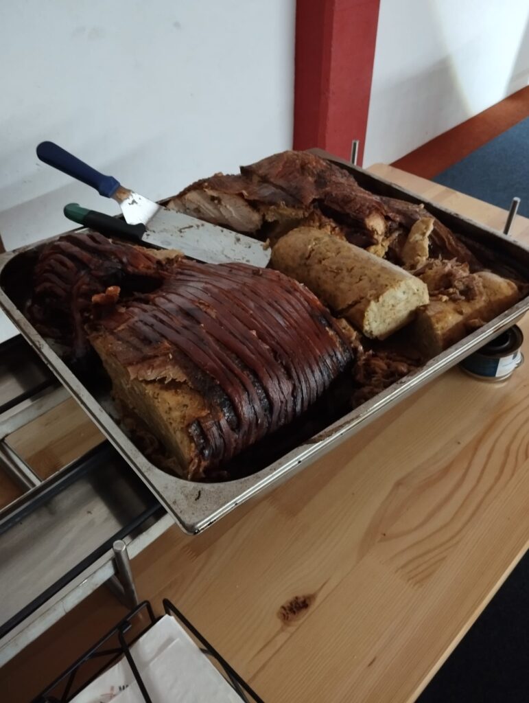 Nachdem letztes Jahr mal was „Anderes“ beim leiblichen Wohl probiert wurde, gab es heuer dann auf vielfachen Wunsch doch wieder ein Spanferkel und einen Truthahn.